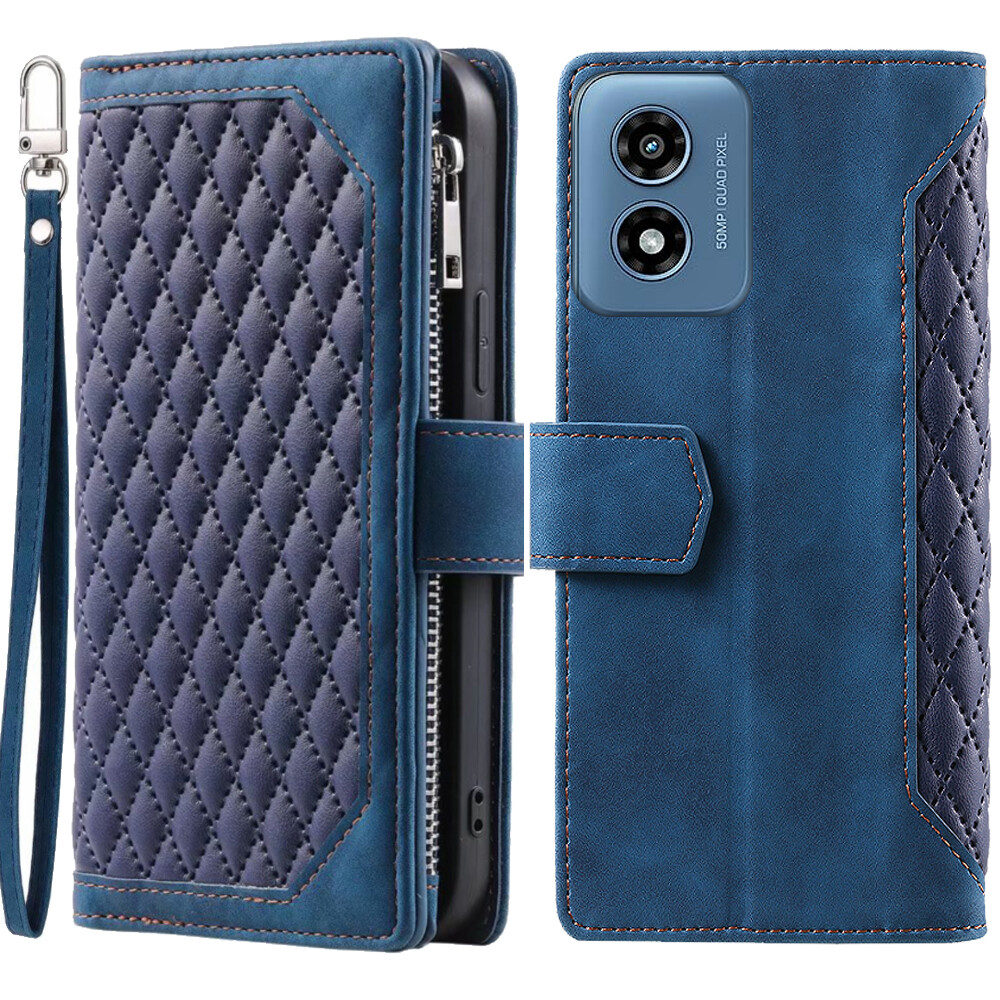 Luxury Rhombic Leather Wallet Case Zipper Flip Card Case For Motorola Moto G04