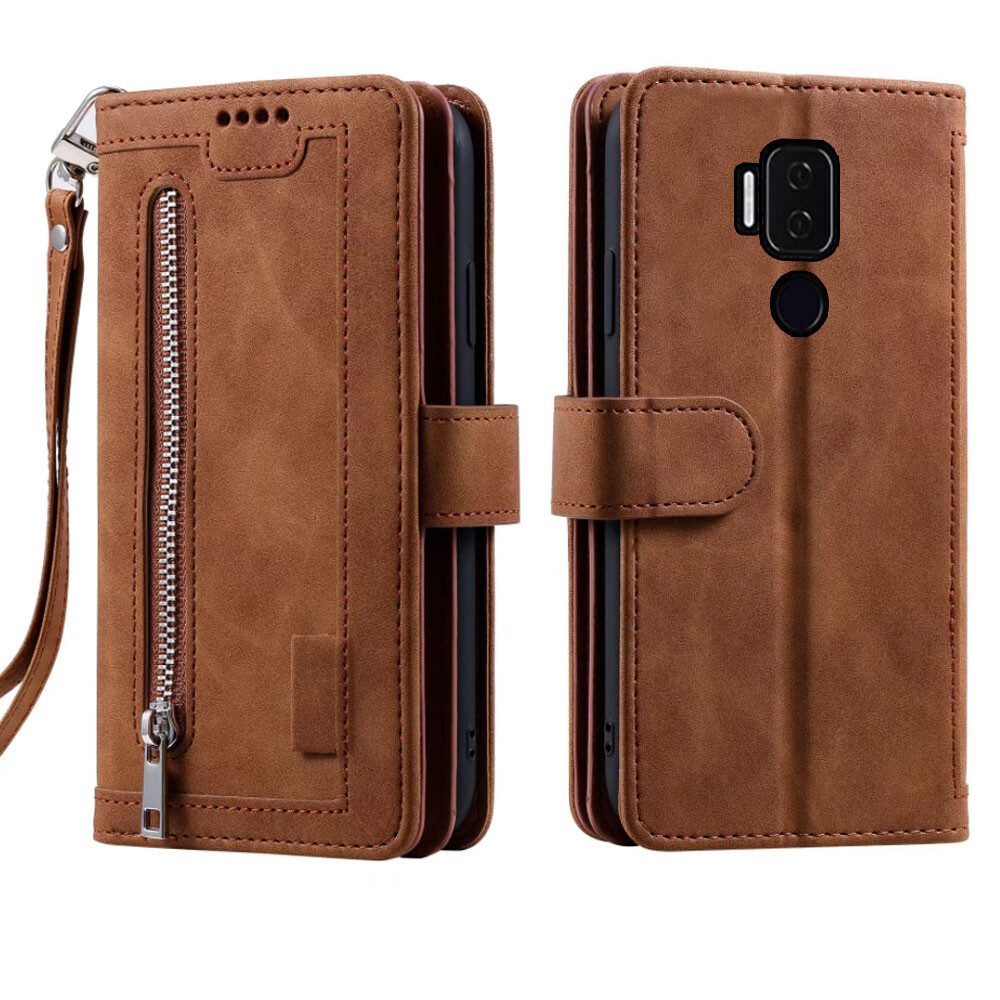 For Cricket Influence Wallet Case,Leather Zipper Magnetic Flip Card Phone Case