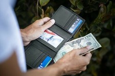 BLACK RFID Signal Blocking Mens Leather ID Card Center Flap Thin Trifold Wallet