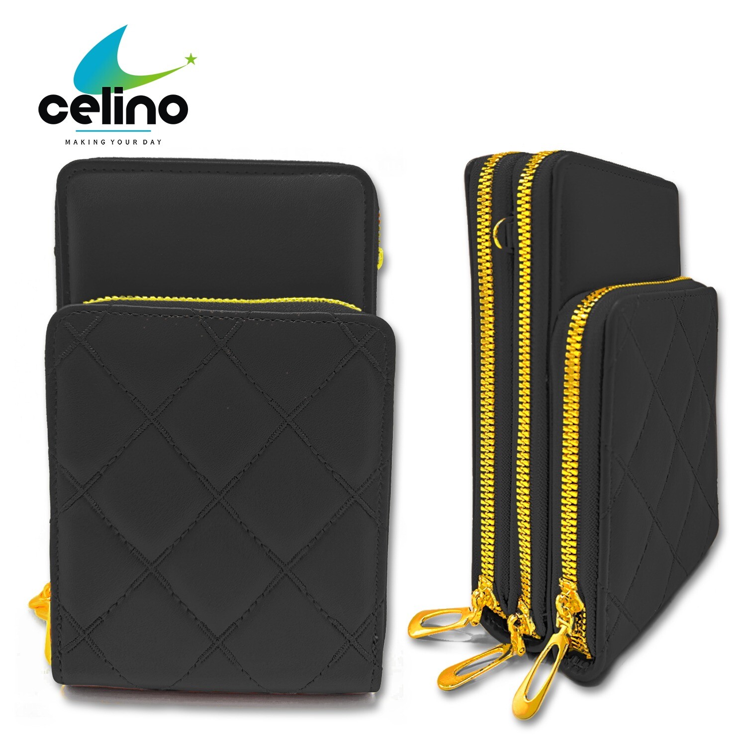Quilted PU Leather Mobile Phone Crossbody Bag – Wallet Pouch with Zipper