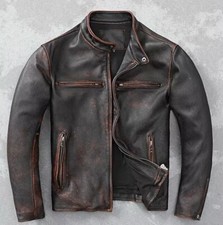 MEN’S VINTAGE CAFE RACER BLACK GENUINE LEATHER SLIM FIT REAL RETRO BIKER JACKET