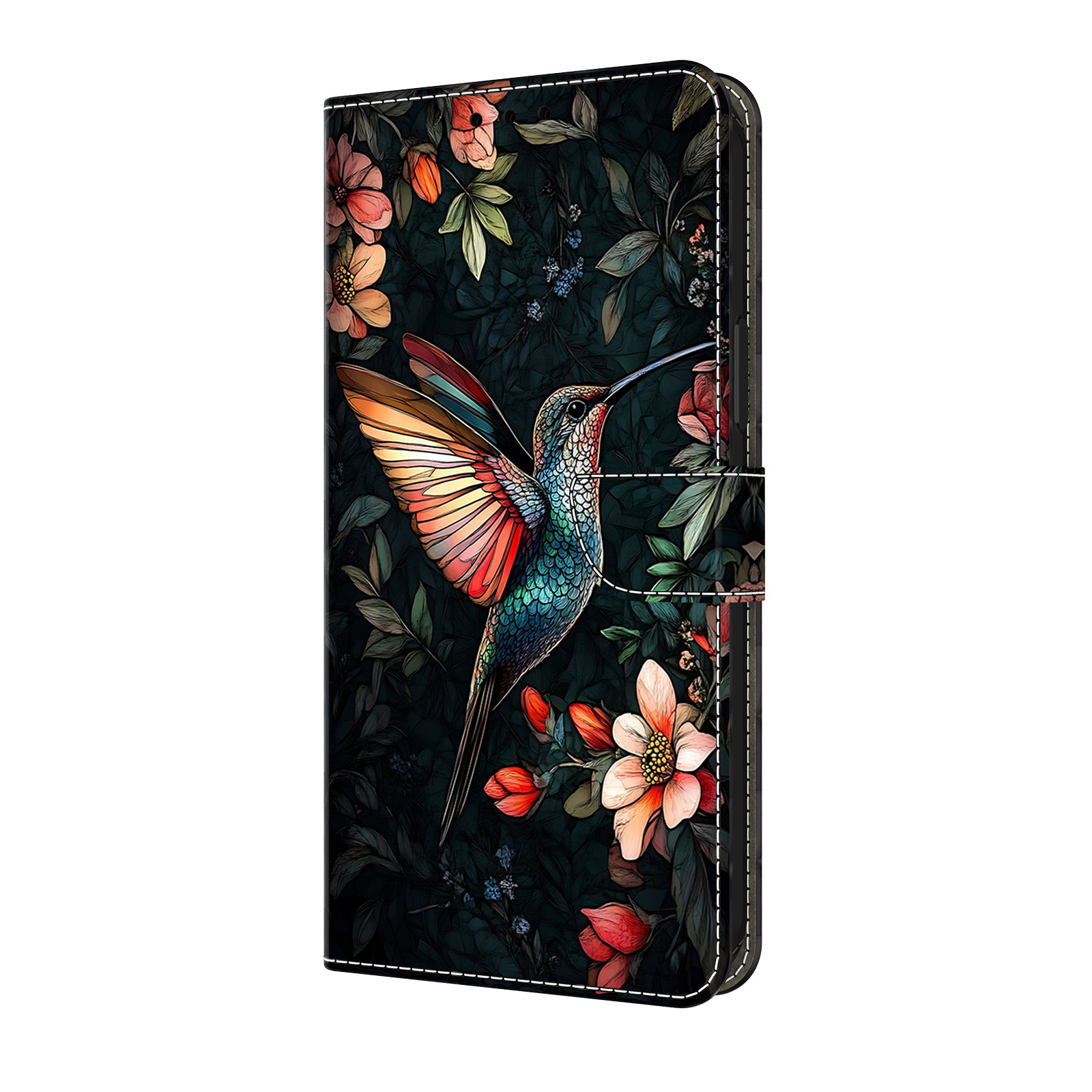 Floral, Patterned, Pictorial, Slim, Thermoplastic Polyurethane (TPU), Double-sides Patterns, Black Hand Strap, Flip Case, Printed Pattern