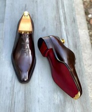 Handmade chocolate brown dress leather shoes, formal moccasin slip on shoes mens