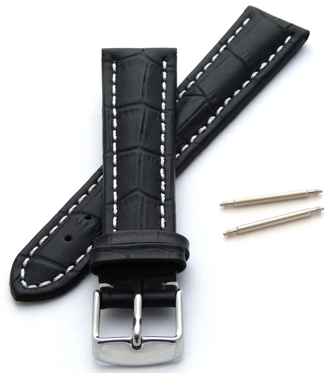 Genuine Calf Leather Watch Strap Padded Alligator Grain XL Length Uhrenarmband