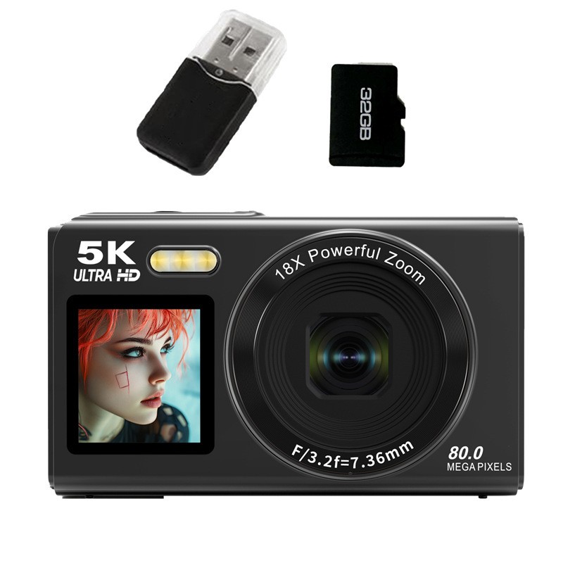 Dual Screen 5K Digital Camera 18X Zoom 80MP Portable Recorder for Videos