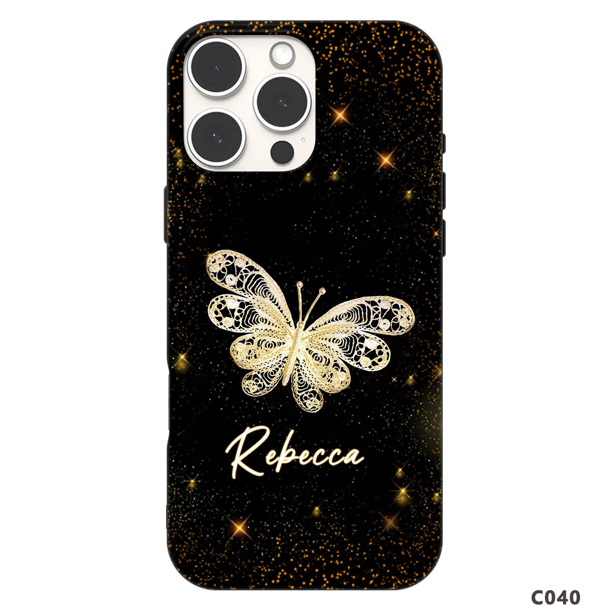 Personalised Name Black Phone Case, Printed Pattern, Butterfly