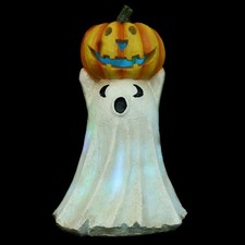 Halloween Ghost Holding Pumpkin Statue – Resin Spooky Witch Hat Decor Figurine