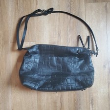 Vintage Black Croc Embossed Genuine Leather Belt Women's S Wide Gold Buckl Italy