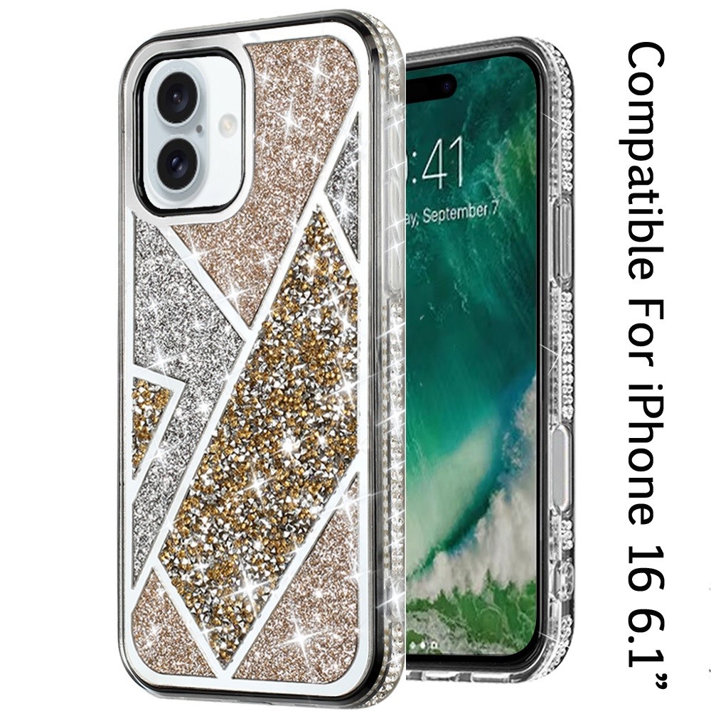 For iPhone 16 6.1 inch Rhombus Bling Glitter Diamond Case Cover -