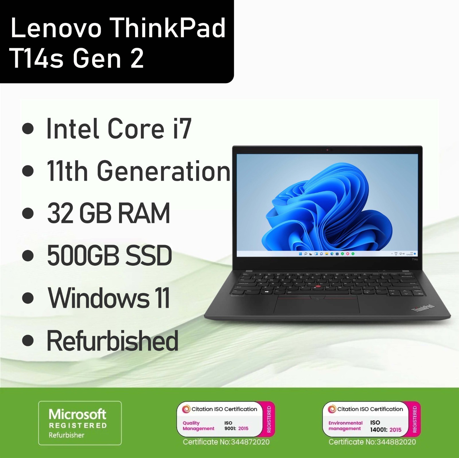Lenovo ThinkPad T14s Gen 2 i7-1185G7 3.00GHz 32GB Ram 500GB Windows11 Pro Laptop