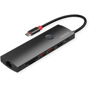 ROLINE USB 3.2 Gen2 Type C Multiport Docking Station, HDMI 4K60, 2x USB 3.2 Gen2, 1x USB-C PD, 1x Gigabit Ethernet, 1x SD/microSD Card Reader The USB Type-C Docking Station provides your MacBook, Ultrabook, notebook or laptop with a 4K-capable HDMI port, as well as 2x USB 3.2 Gen 2 ports (data transfer rates up to 10 Gbit/s), 1x USB Type-C PD (Power Delivery) port, 1x Gigabit Ethernet, and an SD/microSD card reader! Features Plug & Play Aluminum housing in dark gray Blue illuminated on/off button for the HDMI port Multiport docking station with HDMI connection – allows screen extension or mirroring to an additional monitor, TV, or projector Max. HDMI resolution: 3840x2160 at 60Hz The cable can be inserted into the docking station itself when not in use to form a loop (for transport) Max. USB data rate: 10 Gbit/s System requirements: Windows 7/8/10 or macOS X10.2 and above Ports for peripherals: 1x HDMI 4K video output: Mirror or extend your screen to a TV, monitor, or projector. 2x USB 3.2 Gen 2 Type-A ports (data transfer rates up to 10 Gbit/s), for connecting devices such as keyboard/mouse, USB HDD/SSD, etc. 1x Type-C PD (Power Delivery, max. 100W) 1x RJ45 for Gigabit Ethernet SD/microSD card reader Technical Data Color: Gray Scope of delivery: Docking station Transmission quality: HDMI Ultra High Speed (HDMI 2.0) Max. resolution: 3840 x 2160 @60Hz (4K, UHD-1) Connections, side 1 (PC): USB-C Connections, side 2 (peripherals): 2x USB 3.2 Gen 2 female, 1x HDMI female, 1x Gigabit Ethernet female, 1x USB-C PD, 1x SD/TF Side 1 connector type: USB Type-C (USB-C) Side 1 connector gender: Male (plug) Side 2 connector types: HDMI Type A, USB 3 Type A, USB 3 Type A, USB Type-C PD (Power Delivery), RJ45, SD card slot, microSD card slot Side 2 connector gender: Female (socket) Cable color: Black Application: External Material: Aluminum Technical feature: One-button on/off screen control Operating temperature: min. 0 °C Operating temperature: max. 60 °C Dimensions (W x D x H): 39 x 135 x 15 mm Weight: 78 g